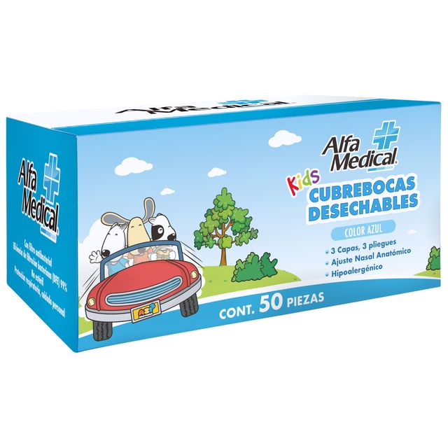CUBREBOCAS DESECHABLES TRES CAPAS / KIDS / COLOR AZUL / 50 PZ